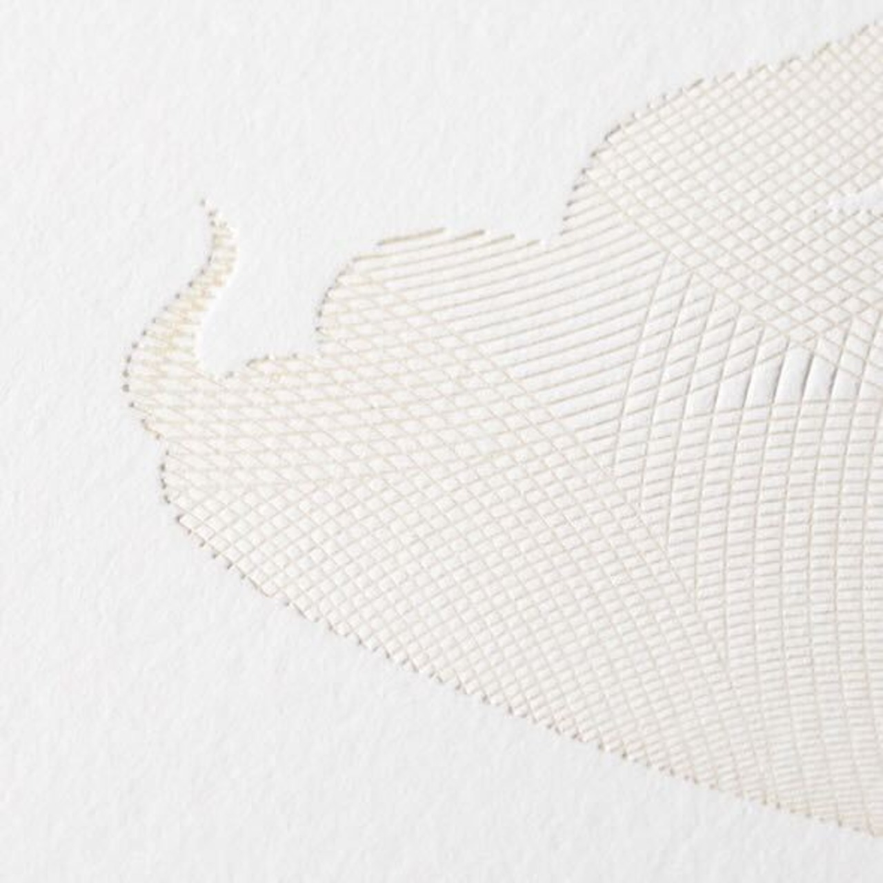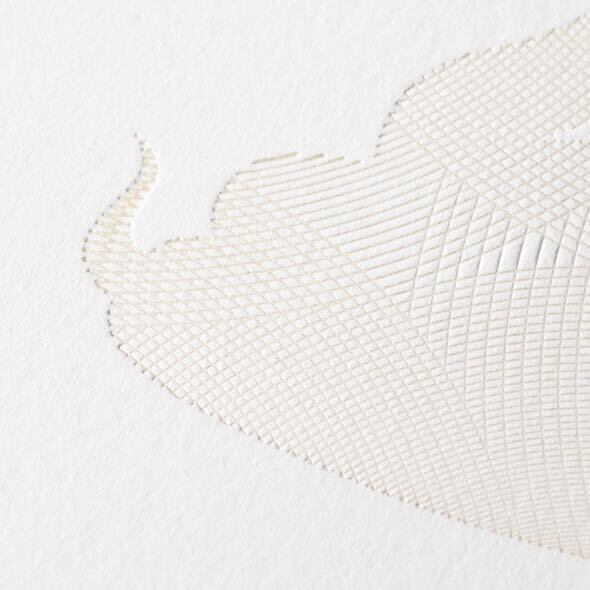 繊細に交わるシンプルなラインのみで印刷された馬。細やかな線で印刷された模様は、活版印刷の特徴である凹凸を活かしてその躍動感を表現しています。