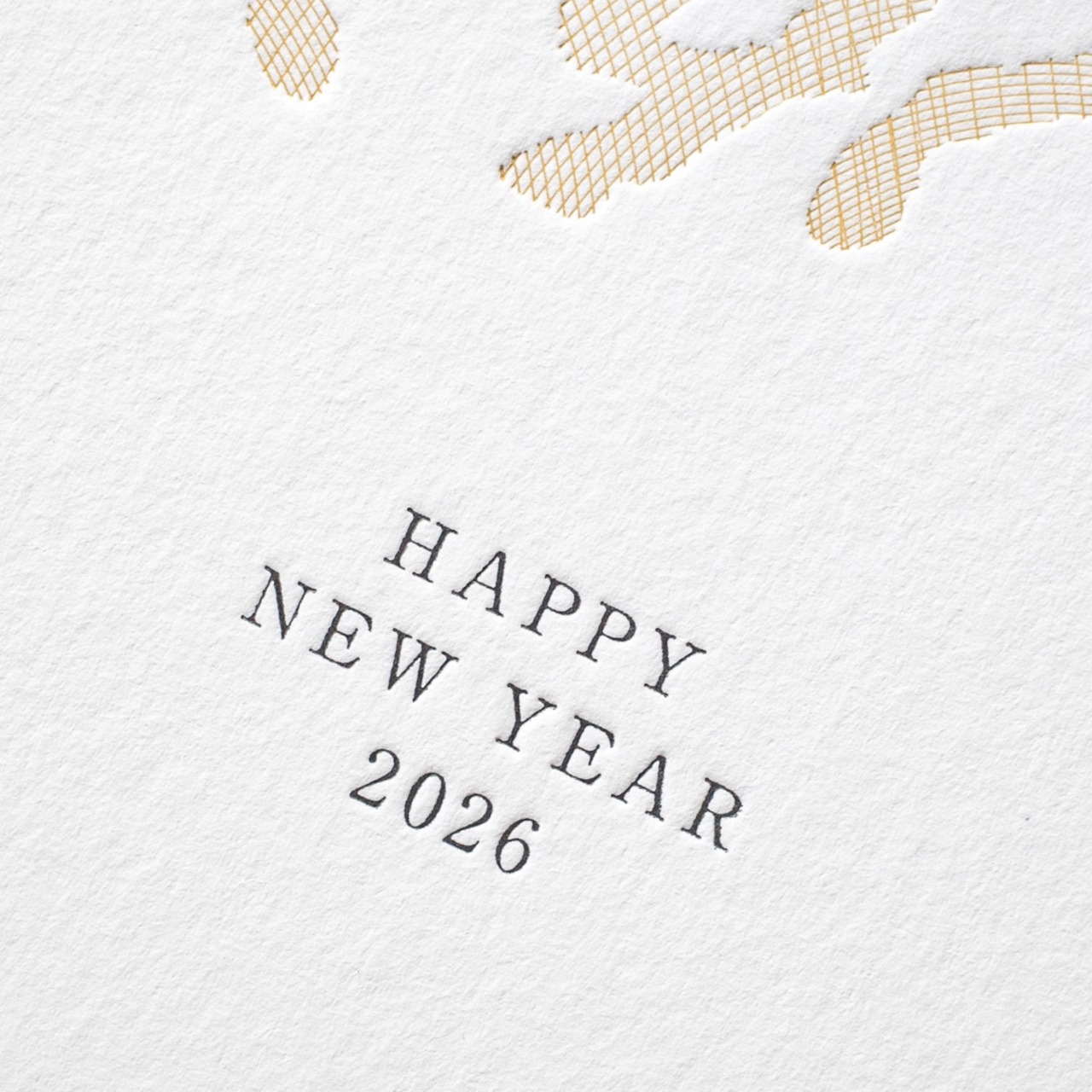 2026年の干支「午」のシルエットを活版印刷した年賀状。